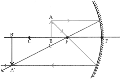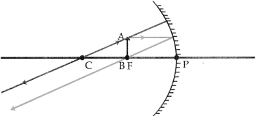 (b) A ray diagram for object beyond centre of curvature for a concave mirror. – Object between infinity and C.