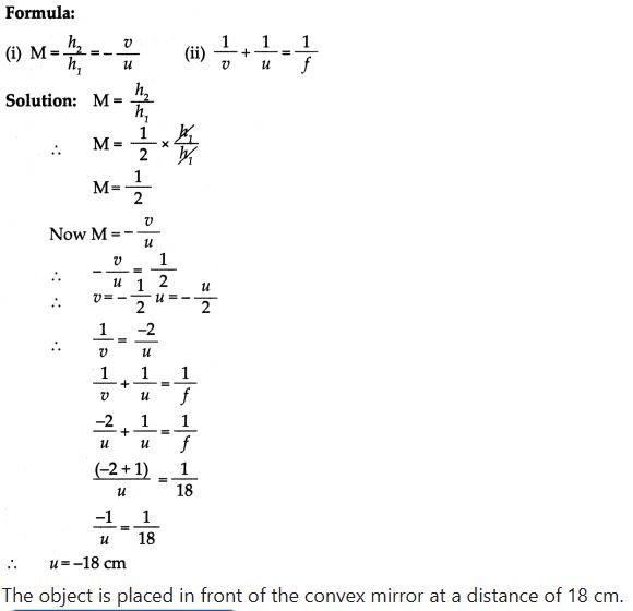 b. A convex mirror has a focal length of 18 cm. The image of an object kept in front of the mirror is half the height of the object. What is the distance of the object from the mirror?