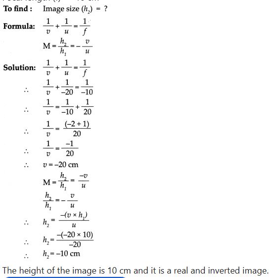 5. Solve the following examples a. An object of height 7 cm is kept at a distance of 25 cm in front of a concave mirror. The focal length of the mirror is 15 cm. At what distance from the mirror should a screen be kept so as to get a clear image? What will be the size and nature of the image?