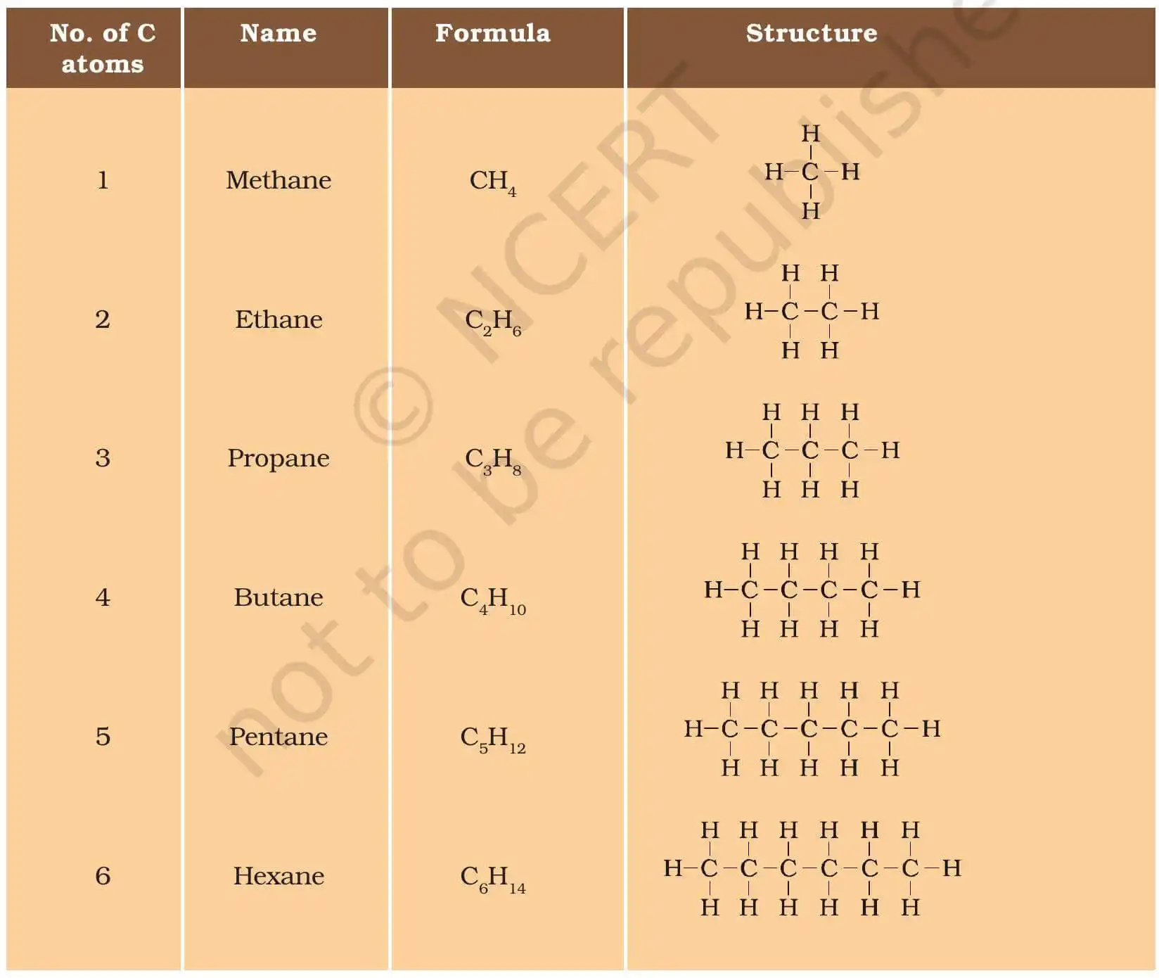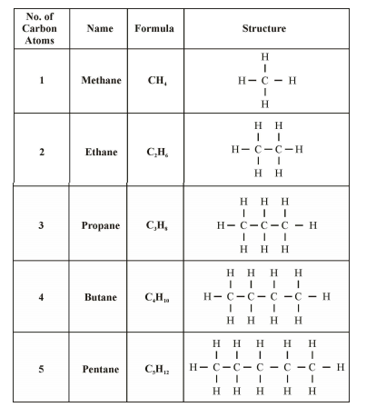 Formulae and structures of saturated compounds of carbon and hydrogen