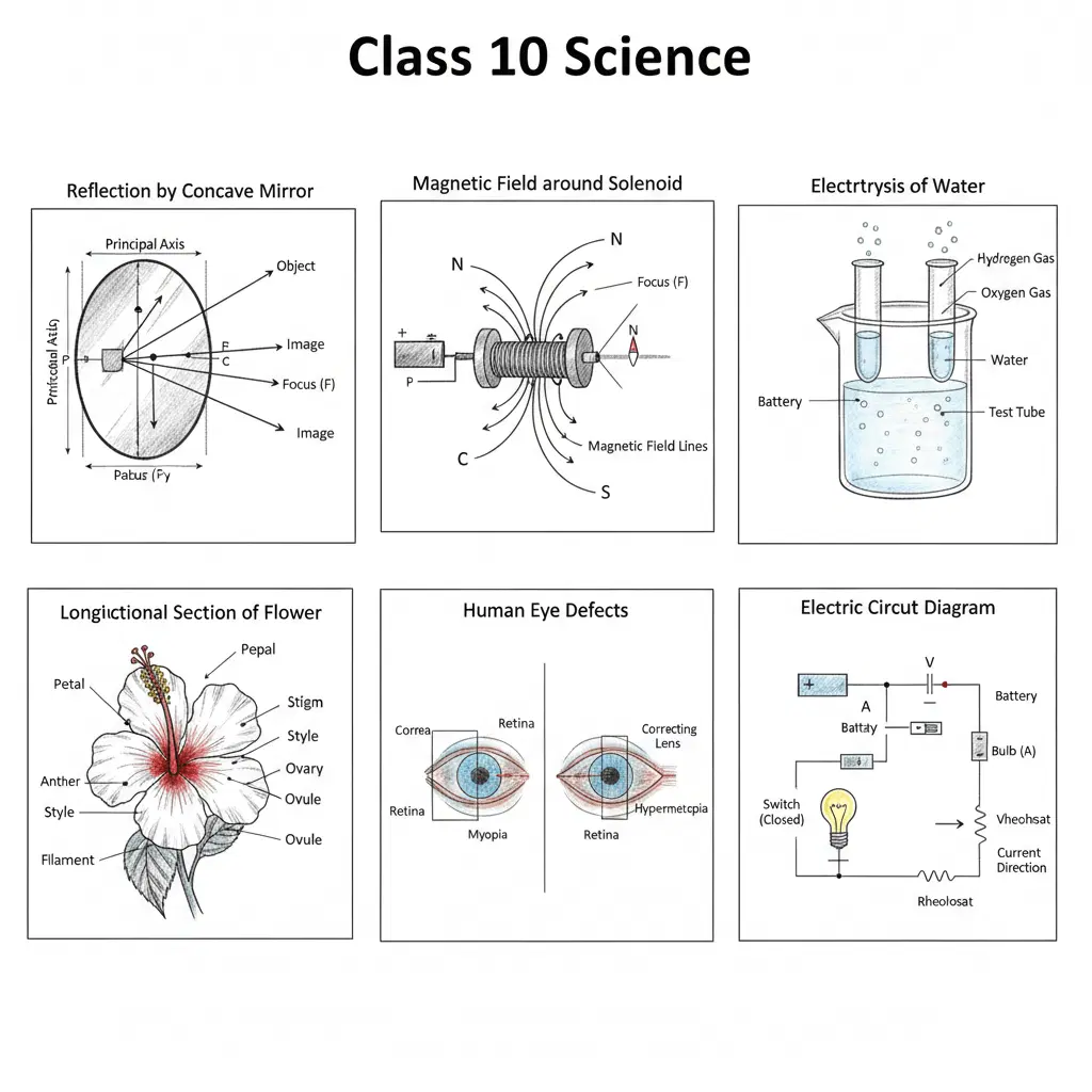 इन नोट्स में Science Part 1 और Part 2 के सभी महत्वपूर्ण अध्याय शामिल हैं, जिनमें MCQs, 1 Mark, 3–5 Marks और 10 Marks के प्रश्नों की पूरी तैयारी कराई जाती है।