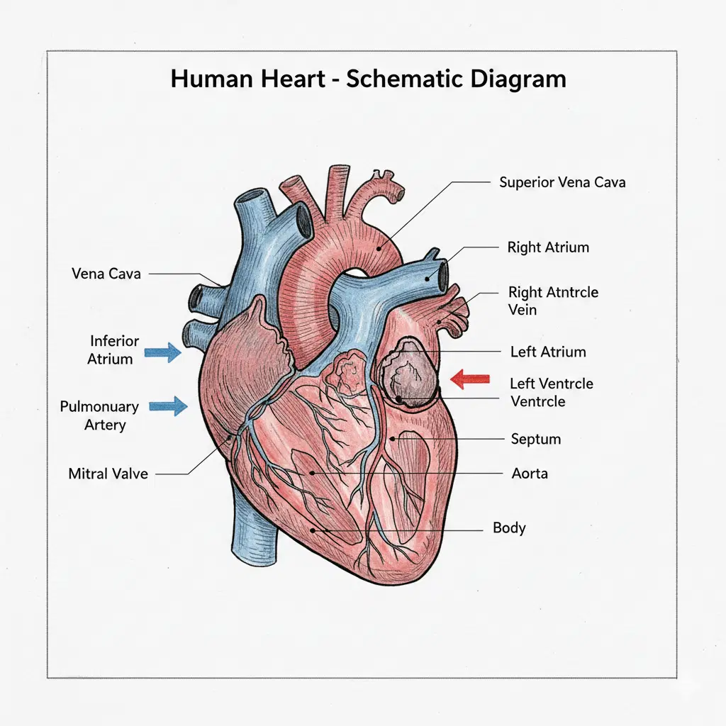 - Draw a neat and labelled diagram of Human Heart – Labelled Diagram.