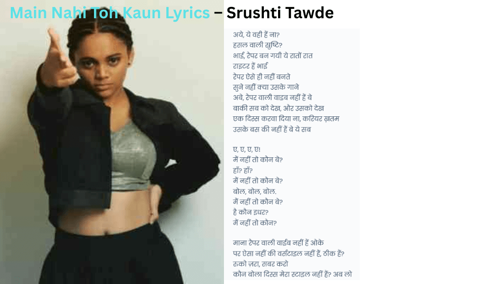 “Main Nahi Toh Kaun” एक energetic और confident rap song है, जिसे Srushti Tawade ने MTV Hustle मंच पर perform किया था। यह गाना self-confidence, self-identity और female empowerment को दर्शाता है।