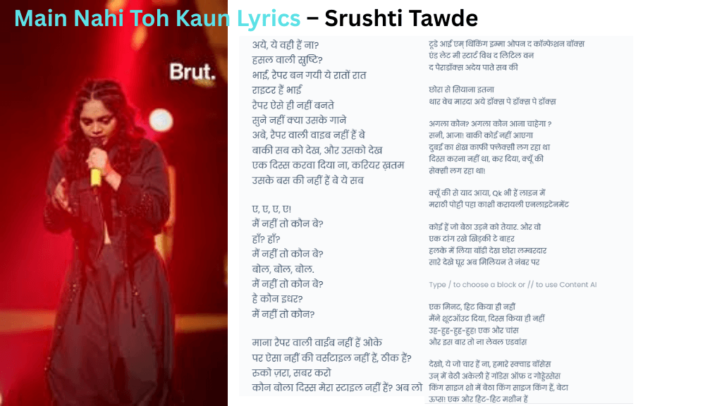🎤 Song Overview – Main Nahi Toh Kaun Lyrics – Srushti Tawde
