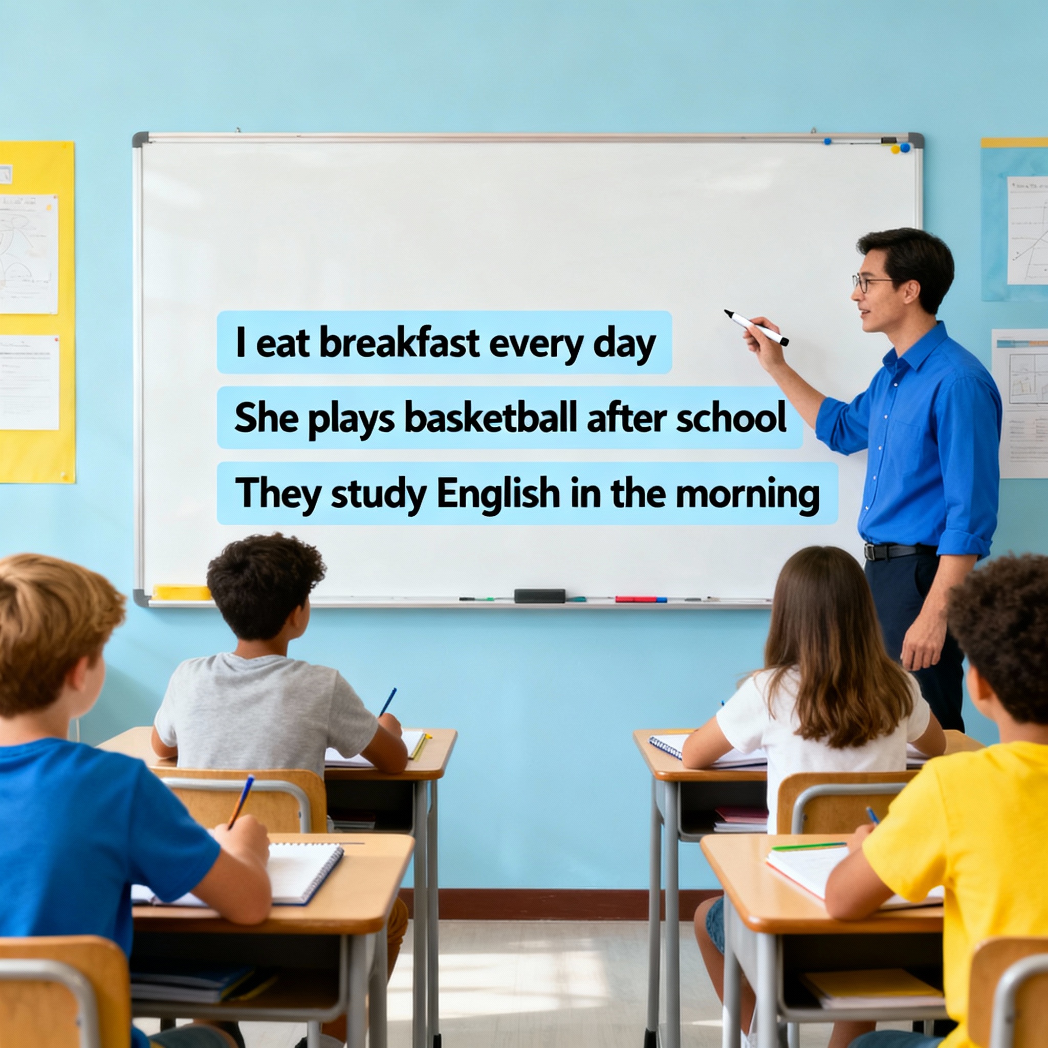 - The teacher taught us a new lesson.