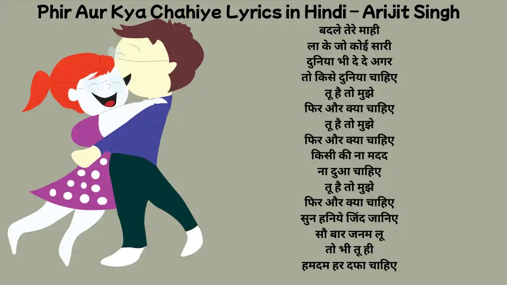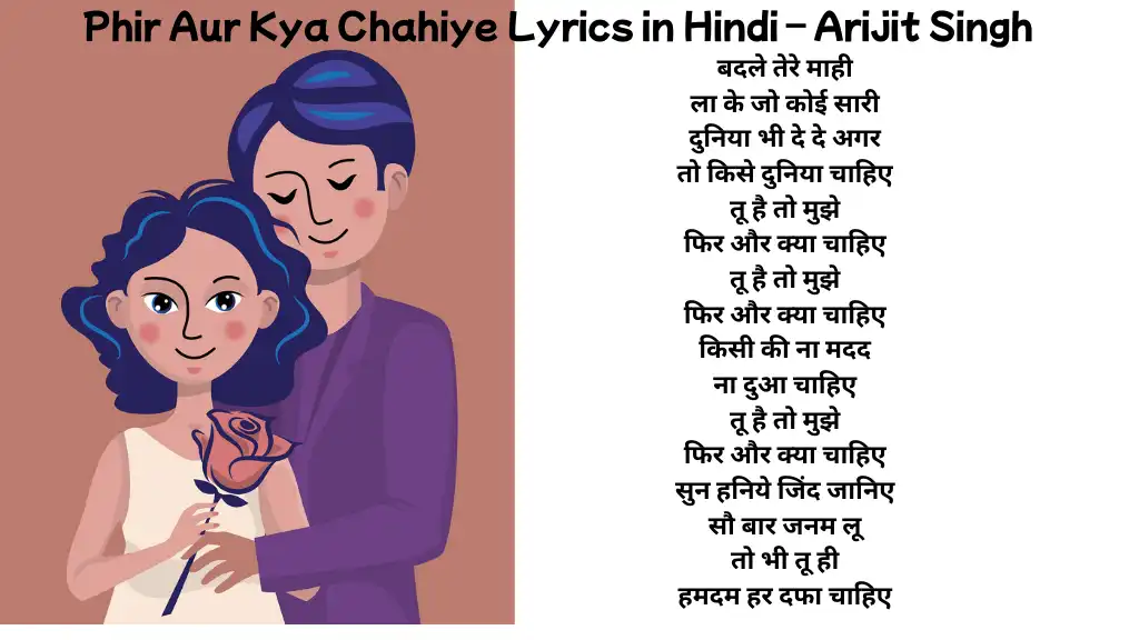 Phir Aur Kya Chahiye Lyrics in Hindi is a soulful romantic song sung by Arijit Singh, expressing deep love, gratitude, and emotional fulfillment.